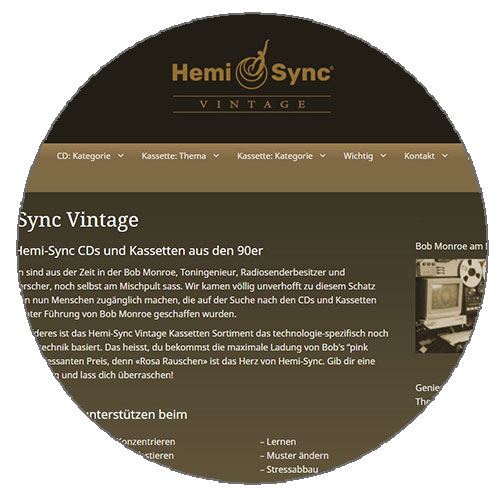 Im Shop finden Sie original verpackte CDs und Kassetten aus der Schaffenszeit von Robert A. Monroe. Es hat darunter einige Schnäppchen, die heute im normalen Handel nicht mehr lieferbar sind. Die Preise orientieren sich an der Menge der noch verfügbaren Artikel. Je früher Sie bestellen, je günstiger sind die Hemi-Sync® CDs und Kassetten.